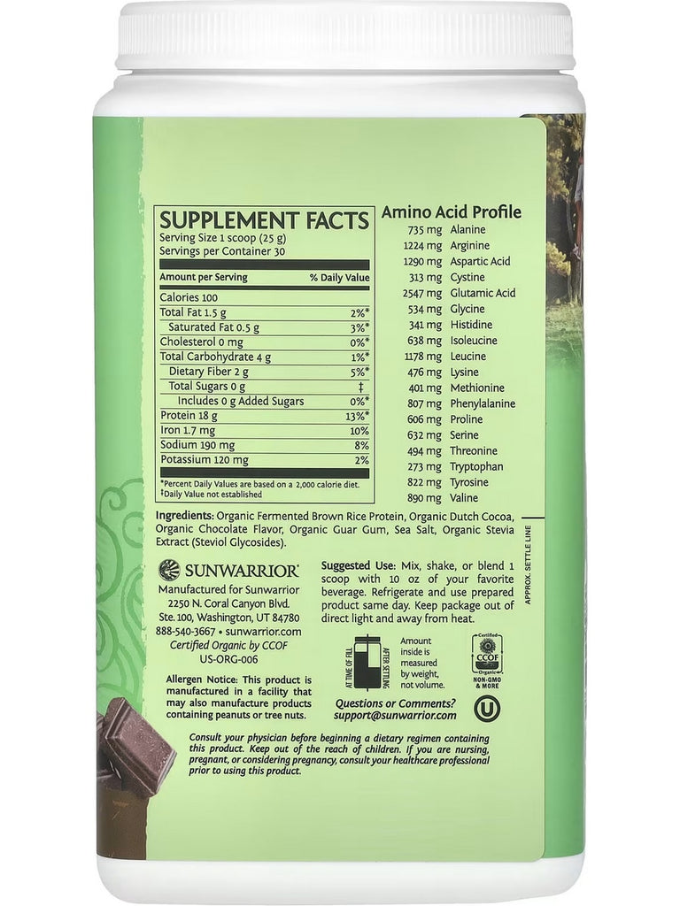 Sunwarrior, Protein Classic, Chocolate, 1.5 lb (750 g)
