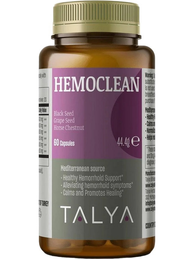 Talya Hemoclean employs a blend of natural herbal ingredients that work quickly and efficiently to stimulate more regular digestive and bowel function while calming and promoting healing of hemorrhoids from the inside out.