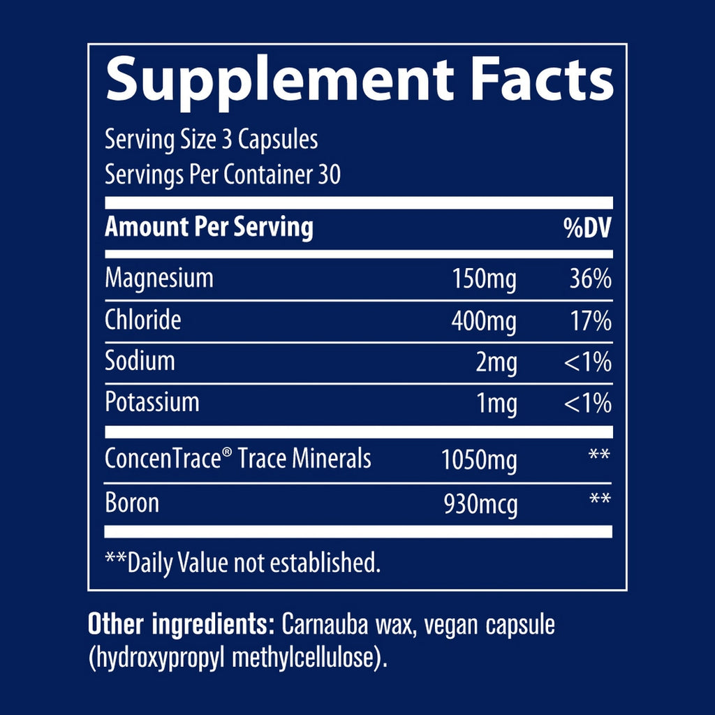 Power up with Concentrace Electrolyte Capsules- Rapid rehydration, support energy, vitality, and overall health by replacing and balancing soluble minerals in the body fluids. Replenish your body with the nutrients you need to maintain optimum health with Trace Minerals Electrolyte Replacement Tablets.