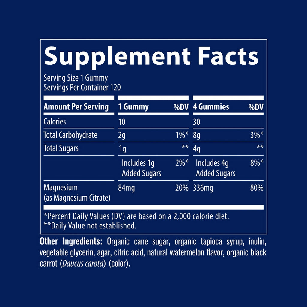 Magnesium Gummies are a delicious way to provide your body with magnesium, one of the most important minerals in the body. Research has shown that up to 80% of Americans are deficient in magnesium. During times of elevated stress or strenuous physical activity, you may want to replenish your body with additional magnesium.