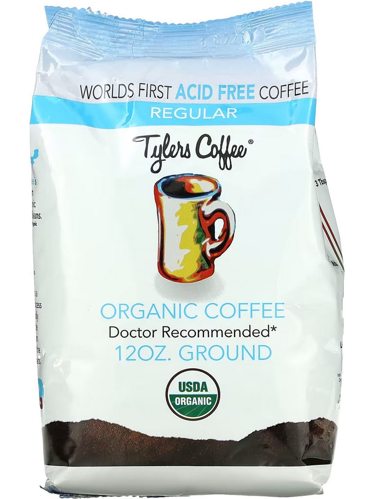 Introducing Tylers Acid-Free Coffee: the ultimate in smooth, delicious flavor. Our USDA Certified Organic beans are roasted carefully to eliminate acidity, giving you a gentle, satisfying cup without the discomfort. Enjoy the pure pleasure of coffee, hassle-free, with Tylers.