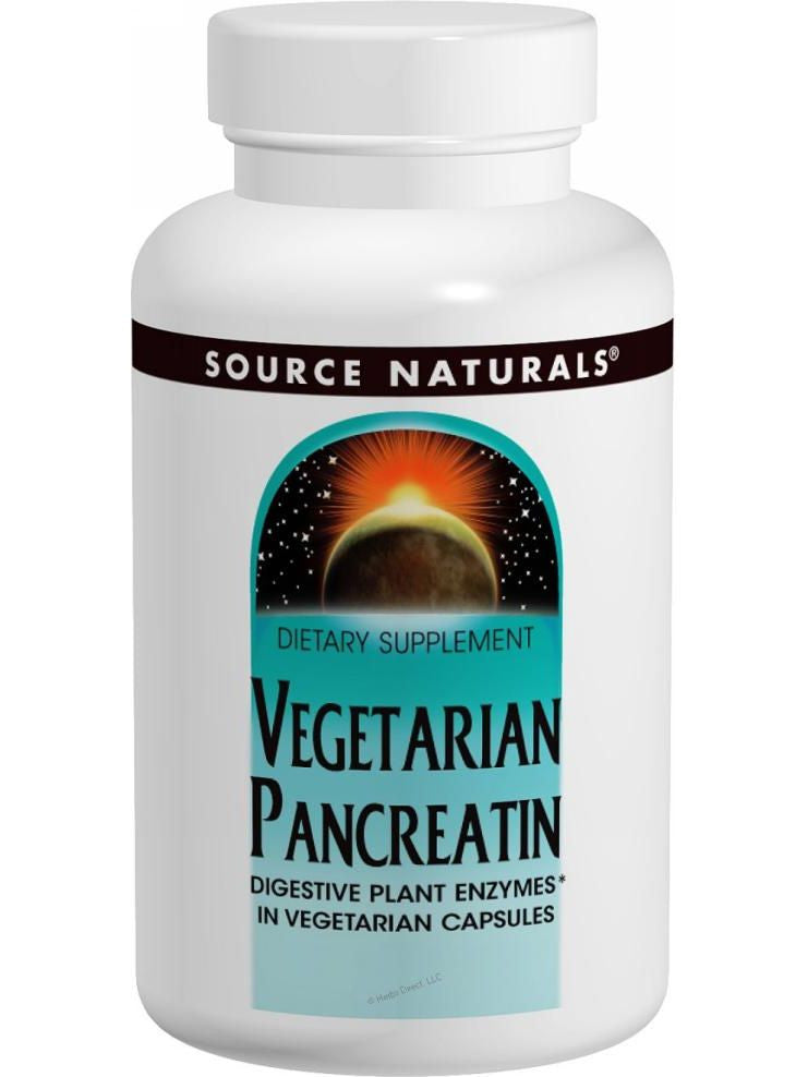Source Naturals Vegetarian Pancreatin is a broad-spectrum plant-based enzyme blend. It includes protease for protein breakdown, amylase for starch breakdown, and lipase for fat breakdown. Unlike pancreatin derived from animal sources, vegetarian pancreatin works at a wide range of pH levels to break down food in the acidic stomach as well as the more neutral intestines. Plus, vegetarian pancreatin can help digest wheat gluten, which may increase stomach and intestinal comfort. Supplementing the body's digestive process with enzymes is of great value in today's fast-paced society.