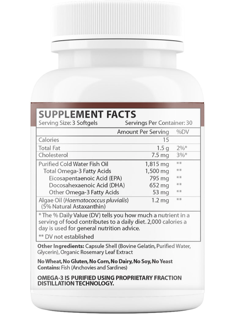 • 1,447 mg of combined EPA & DHA per 3 small and easy to swallow softgels