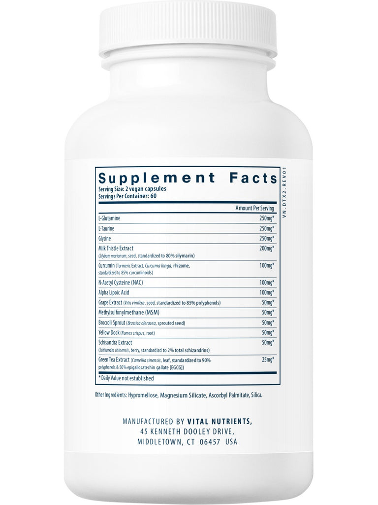 Detox Formula is a unique combination of nutrients designed to promote healthy liver function. The formula contains conditionally essential amino acids utilized in the body’s detoxification pathways, as well as herbs that help maintain liver health. The precursors of glutathione are included, as well as natural sources of sulfur, which support detoxification enzyme activity. The high antioxidant content enhances the body’s natural defense systems.