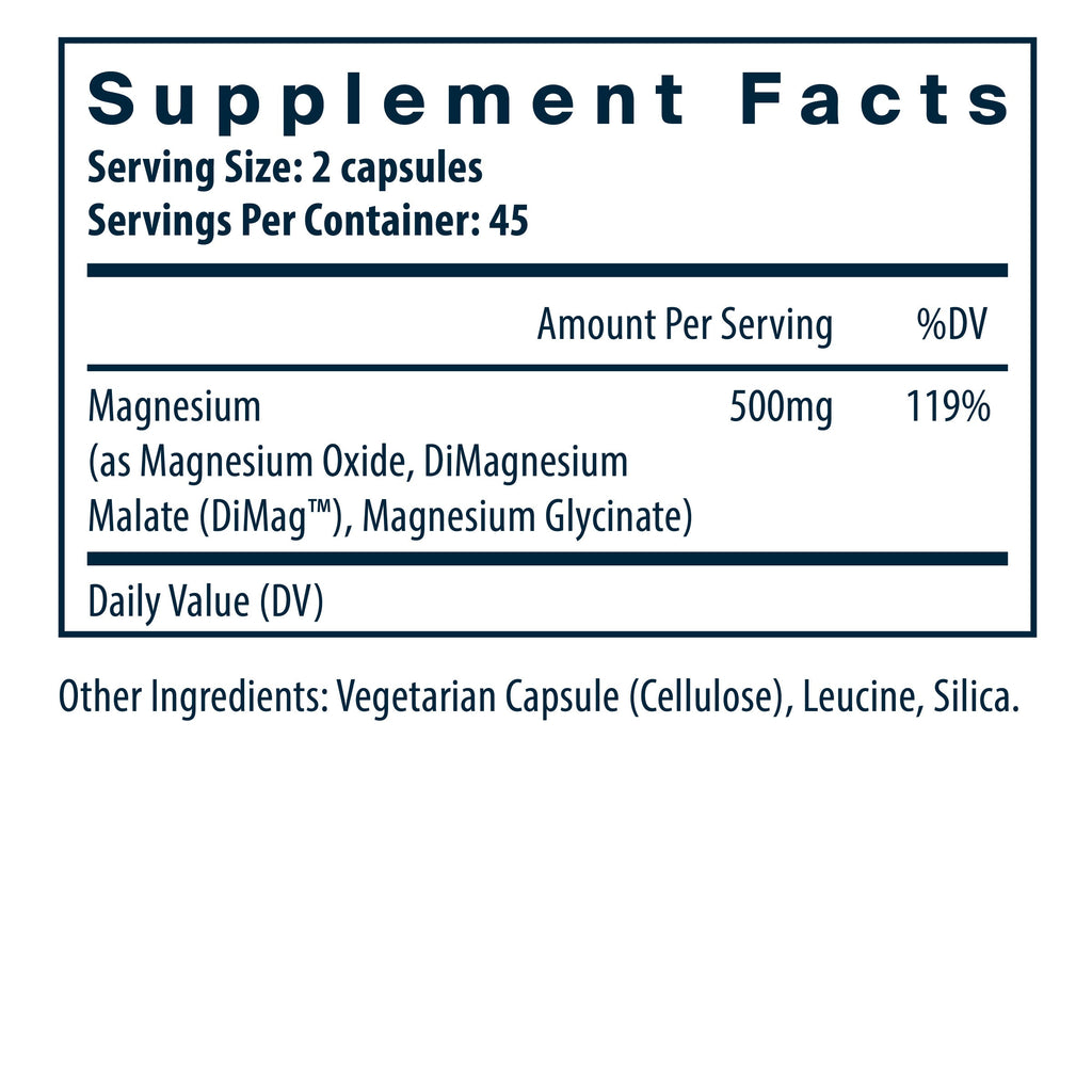 - Includes three forms of magnesium—magnesium glycinate, dimagnesium malate, and magnesium oxide—to support optimal absorption and to be gentle on the stomach