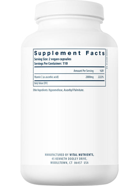 Vital Nutrients, Vitamin C (100% pure ascorbic acid) 1000mg, 220 vegetarian capsules