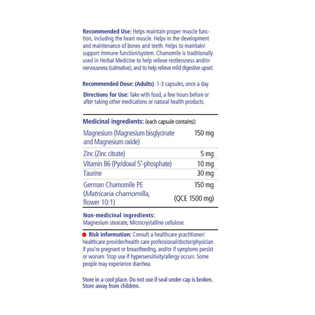 VITALITY Magnesium + Chamomile is formulated to promote relaxation and restful sleep with the synergistic effects of magnesium and German chamomile. With added zinc, active B6 and taurine for high magnesium absorption, VITALITY ensures that you are getting your daily magnesium requirements while providing the ultimate relaxation formula in a convenient capsule format.