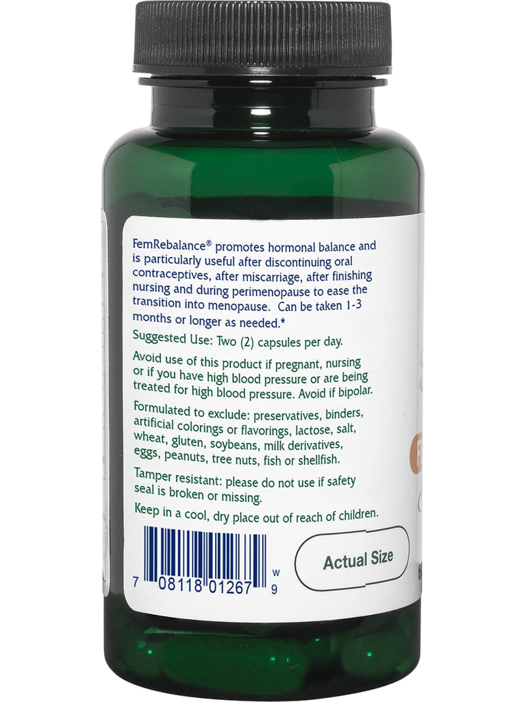 FemRebalance is a unique blend of herbs traditionally used to restore and re-balance a woman's internal hormonal state. Hormonal balance may need restoring after discontinuing oral contraceptives or hormone replacement therapy, during stress, weight loss, during perimenopause to ease the transitional time and numerous other situations that upset the balance of the endocrine system. Hormones can also be disrupted by many environmental toxins such as pesticides, solvents and heavy metals. After going through a cleansing protocol to mobilize and excrete toxins from the body, it may be necessary to assist the body in restoring proper hormonal functioning.