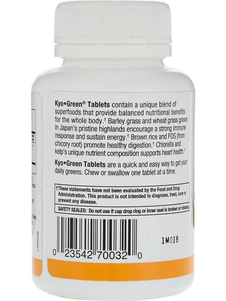 Kyo-Green Tablets are a quick and easy way to get more greens in your diet. Chew or swallow one tablet at a time, six per day for daily serving.