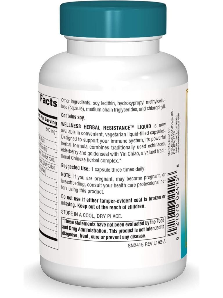 Source Naturals, Wellness Herbal Resistance Liquid Vegetarian Capsules, 120 ct