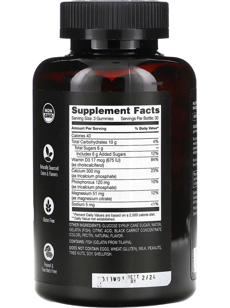 YumV's, Strong Earth Gummies, Calcium Magnesium and Vitamin D, Raspberry, 90 Gummies