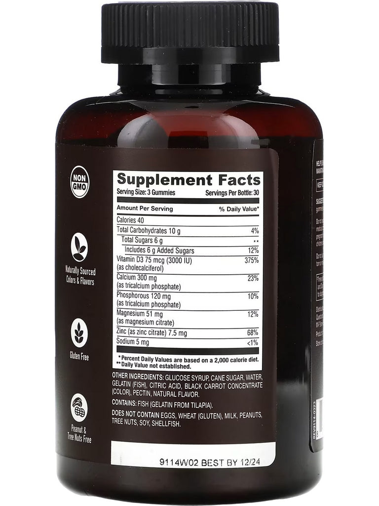 Instead of spending more money when you buy these minerals and vitamins separately, you can bundle them together into one delicious serving of raspberry flavored gummies. Gummies are tasty and easy to chew for adults and kids who don't like swallowing lots of pills, chalky tablets and powders. 3 gummies per serving.